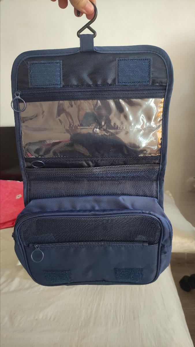 Unlike ordinary pouches, this one hangs for easy access, has multiple compartments for sorting, and keeps wet and dry items separate no more rummaging through a mess.
